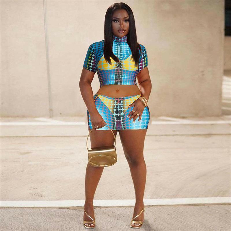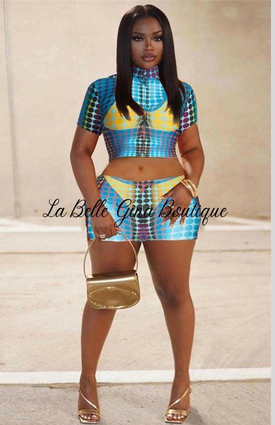 Daphne printed short sleeve top and mini skirt two-piece set - La Belle Gina Boutique