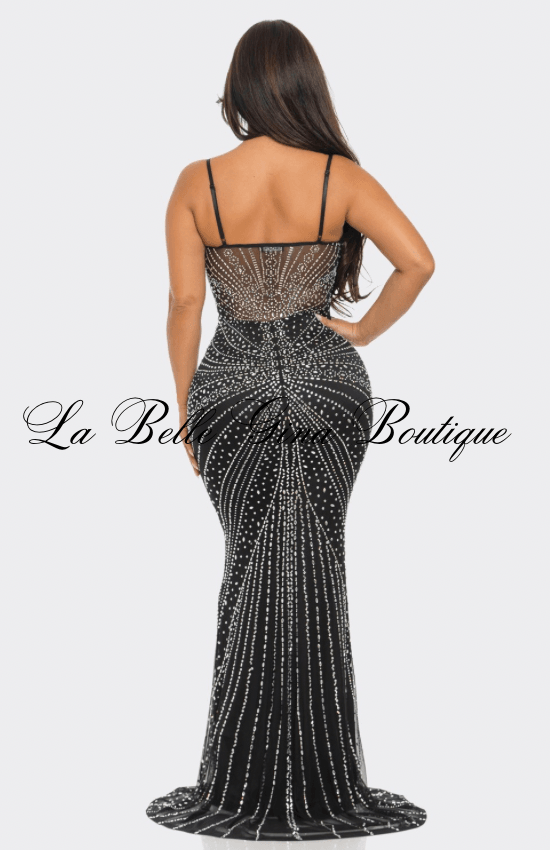 Deborah Rhinestone Embellished Mesh Maxi Dress