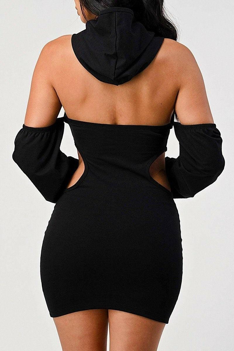 LORA casual fitted hoodie dress with open back . - La Belle Gina Boutique