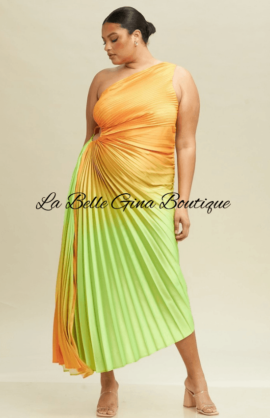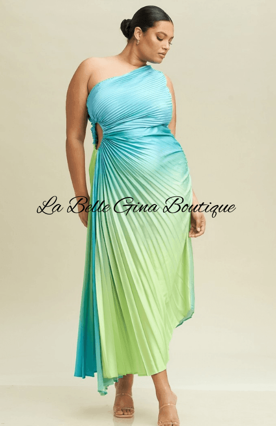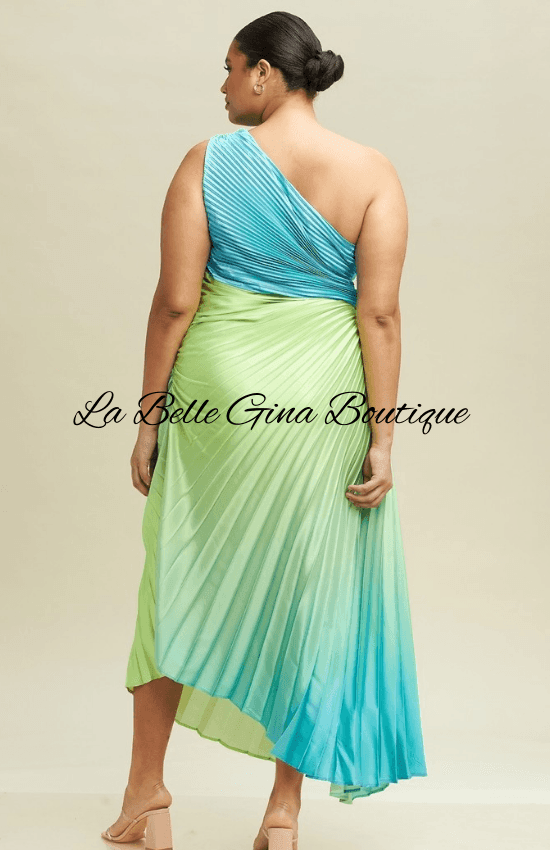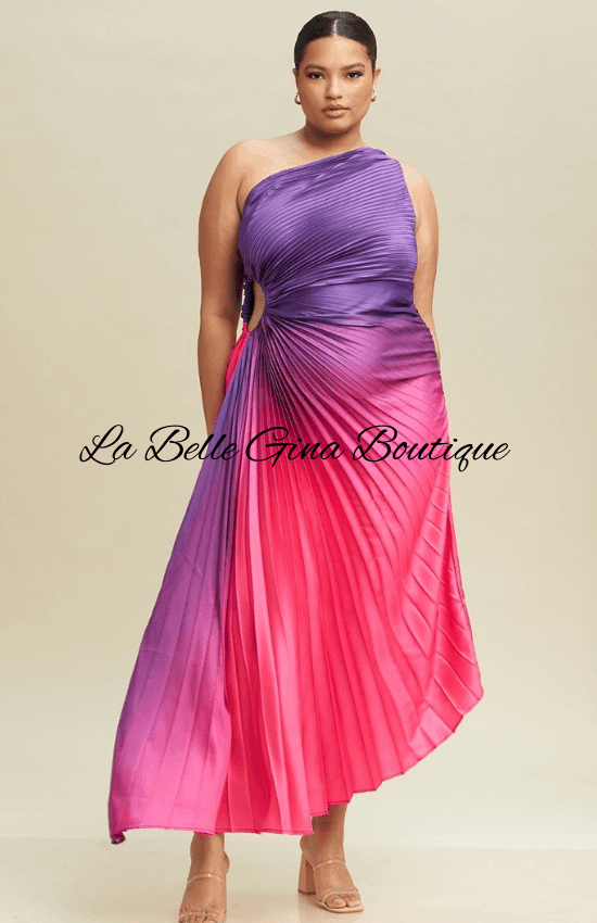 Pleated One-Shoulder Ombré Dress | Plus Size & Regular – La Belle Gina Boutique