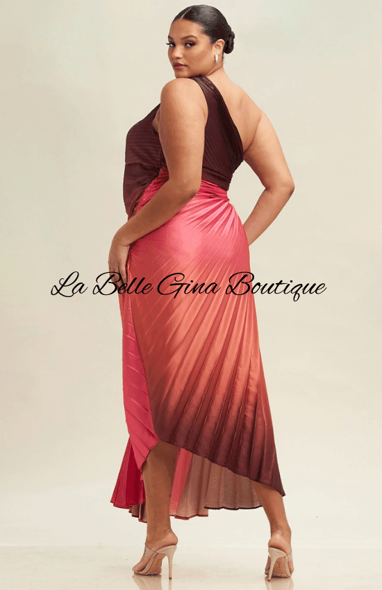 https://www.labelleginaboutique.com/collections/plus-size-glam-chicElevate your wardrobe with the Djoune One Shoulder Ombre Pleated Side Cut Maxi Dress in Coral Rust. This stunning dress features a unique one-shoulder design that flatters your silhouette, while the beautiful ombre effect adds a touch of elegance. The pleated detailing enhances movement, and the side cut adds a modern twist that sets you apart. Perfect for special occasions or a night out, this maxi dress ensures you make a memorable entrance. Embrace style and comfort effortlessly with this exquisite piece.