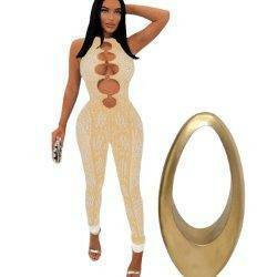 • Features: sleeveless, Sheer mesh, hollow out, See through, Skinny long pants, Bodycon jumpsuit