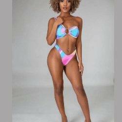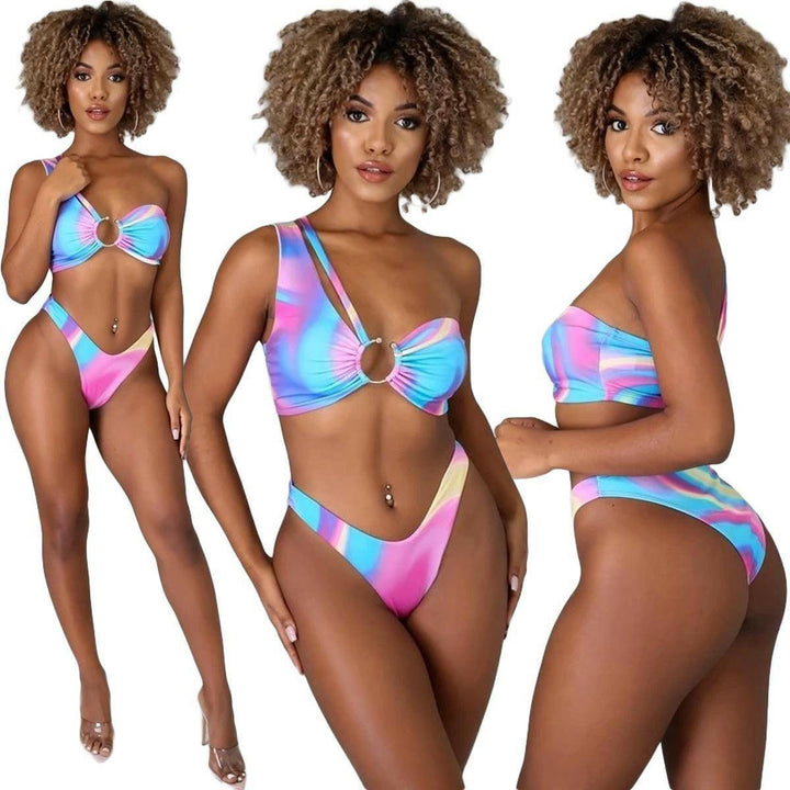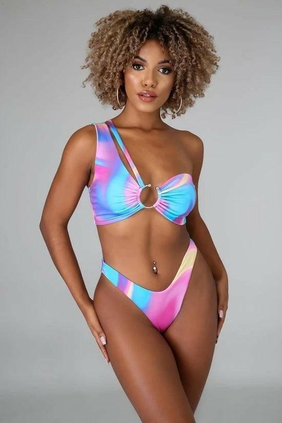 Elise one shoulder split sexy Bikini-Light Blue - La Belle Gina Boutique