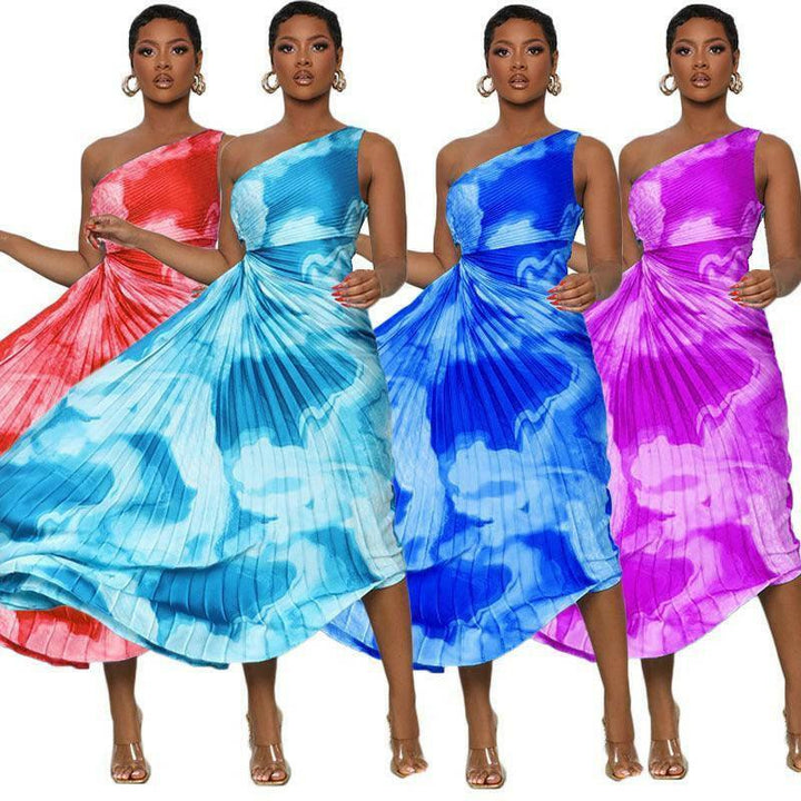 Elise one shoulder wispy print pleated maxi dress-FINAL SALE