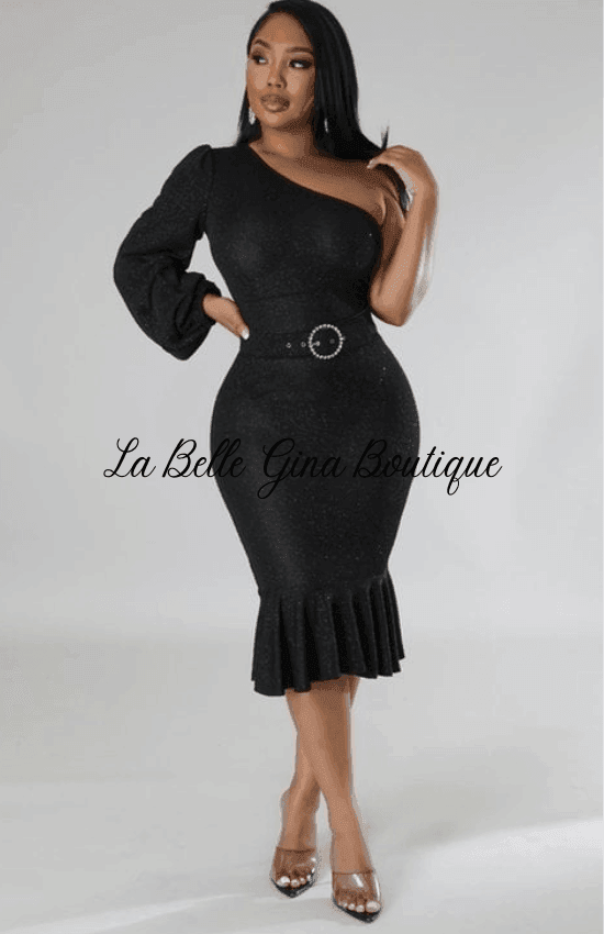 Ermitha One shoulder Semi Stretch Dress - La Belle Gina Boutique