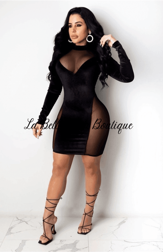 SEXY mesh patchwork velvet mini dress-FINAL SALE