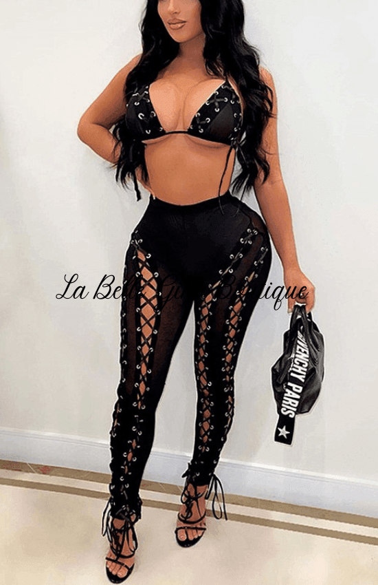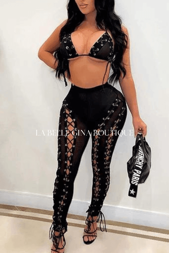 https://www.labelleginaboutique.com/collections/shop-al-womens-fashionStep with intention into the world of bold style with our Lola Lace Down lace mesh leggings and Bralette Set. This set is ideal for women who wish to stand out—whether at work, events, or just a relaxed outing. Each detail is crafted to provide a harmonious blend of comfort and sophistication. Using top-quality polyester and spandex, we ensure flexibility and a supportive, flattering shape conforming to your curves. Delicate mesh textures and intricate lacing bring a sense of confidence and elegance. When you slip into these lace mesh leggings, you create an instant, stylish transformation and exude effortless charm.