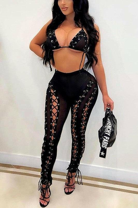 Lola Lace down mesh leggings and bralette set.
