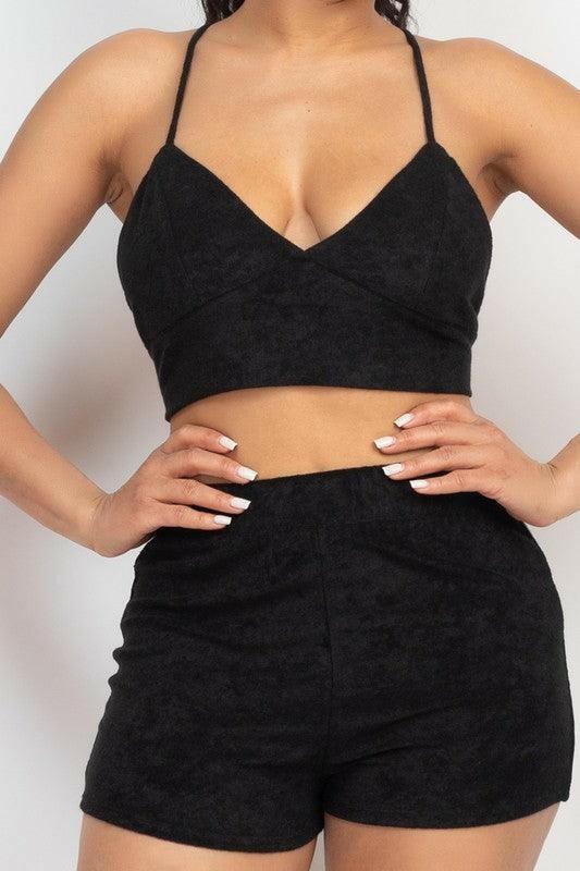 Enjoy a coordinated look with the matching high-waisted shorts and the top, both crafted with care for fashionable women. This set offers the right balance of style and comfort, making it an easy favorite from your closet. The towel bralette top is designed for those who appreciate thoughtful design and crave a modern, chic appeal.