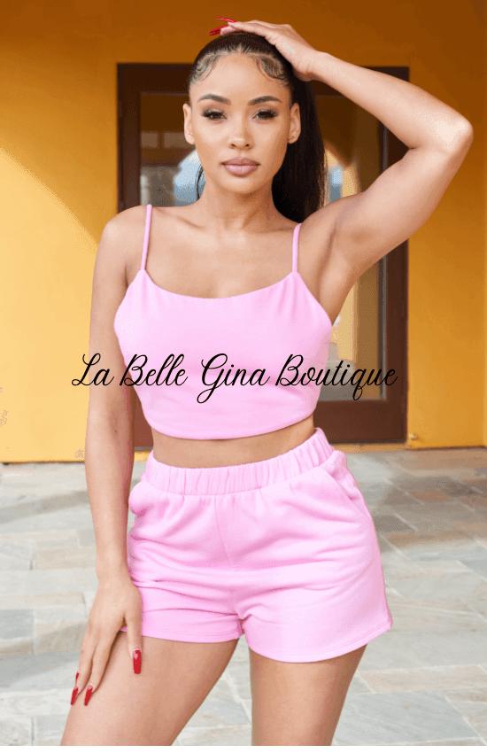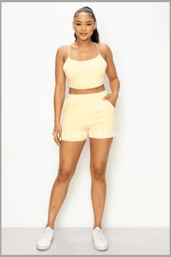 Turn heads with this chic two-piece crop top and shorts set, designed for the ultimate mix of style and comfort. Featuring a sleek fitted crop top with thin straps and matching high-waisted shorts, this set is perfect for warm weather days, lounging in style, or stepping out with confidence.