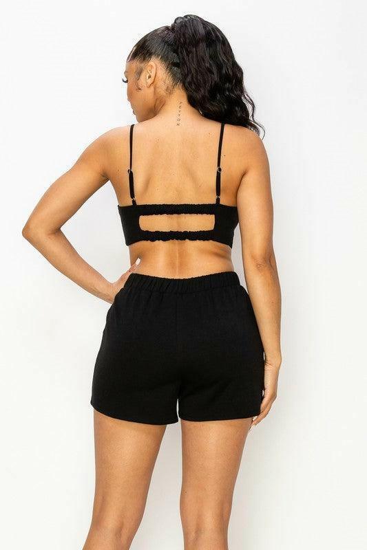 VEVE adjustable back cut out top and short set - La Belle Gina Boutique