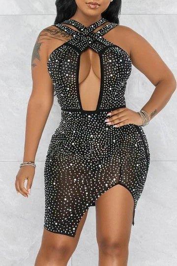 https://www.labelleginaboutique.com/collections/shop-al-womens-fashion Introducing the latest trend in club fashion: the sexy nightclub dress, a statement piece that will boost your confidence and allure. This figure-hugging, sleeveless one-piece dress is designed to enhance your natural silhouette. With a striking mesh design, sparkling hot drill accents, and a softly see-through effect, every detail helps you stand out. Distinctive mesh panels catch the light and make you look fabulous wherever the night takes you.