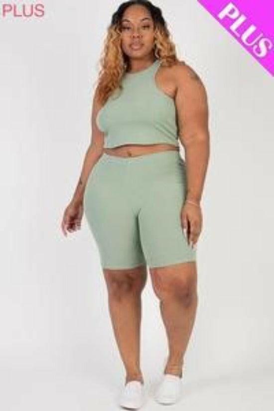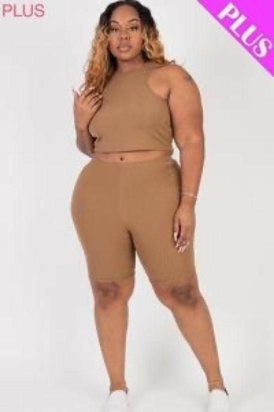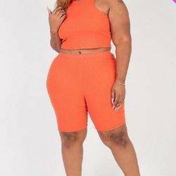 Enhance your everyday style with a ribbed crop top set that works for every occasion. This set is tailored to give plus-size women both comfort and an on-trend look. Whether you are relaxing at home, heading out for errands, or meeting up with friends, you will stand out in style and stay comfortable all day. The ribbed top and biker shorts embrace your curves, delivering support and softness each time you wear them.