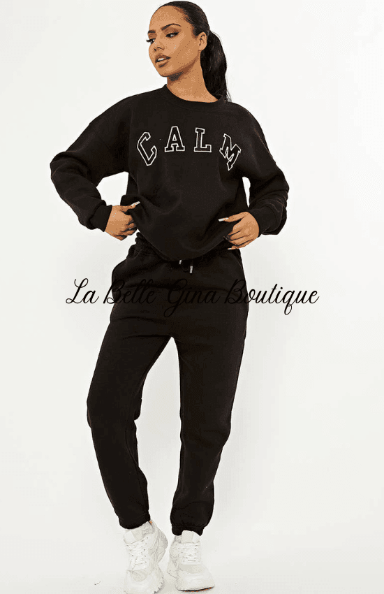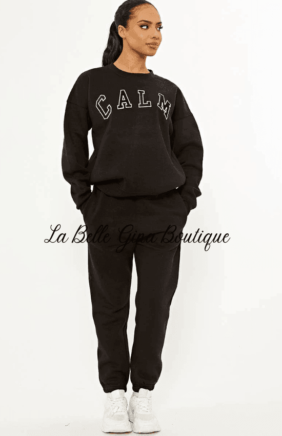 Stay cozy and stylish in the Jaynelle Calm Embroidered Fleece Set. This fashionable matching set features a comfortable fleece fabric that will keep you warm during colder days. The set includes both a top and pants, making it a versatile addition to your wardrobe. Perfect for lounging at home or running errands, this set is a must-have for any fashion-forward individual. Upgrade your fashion game with this trendy Pants Set.
