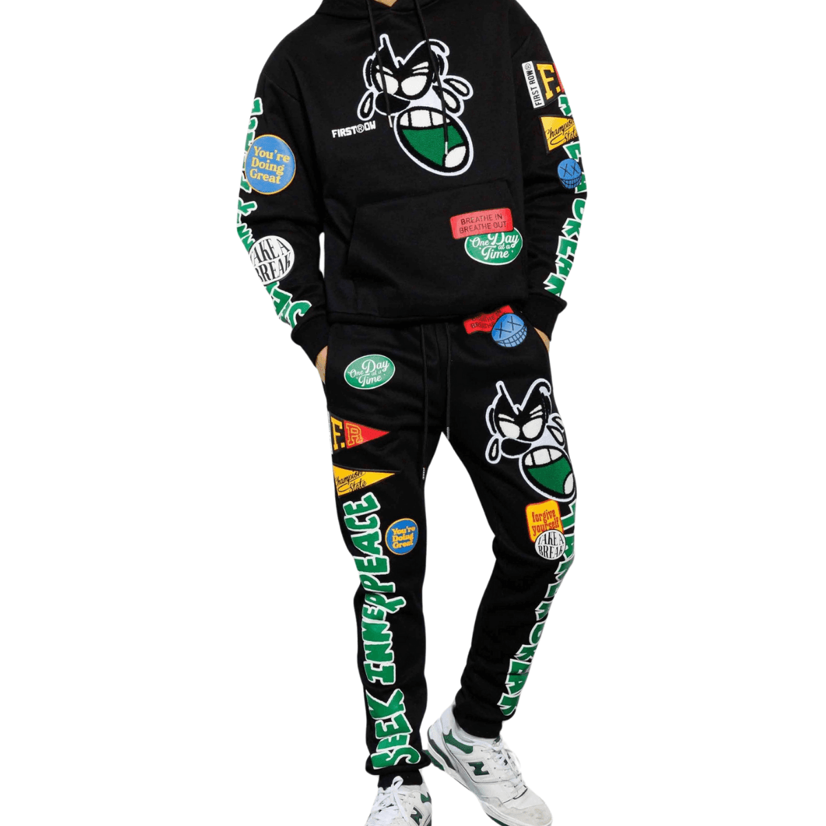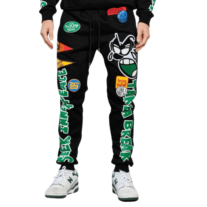 JD All Over First Row Chenille Patch Jogger Sweatpants - La Belle Gina Boutique
