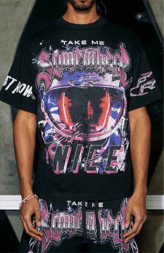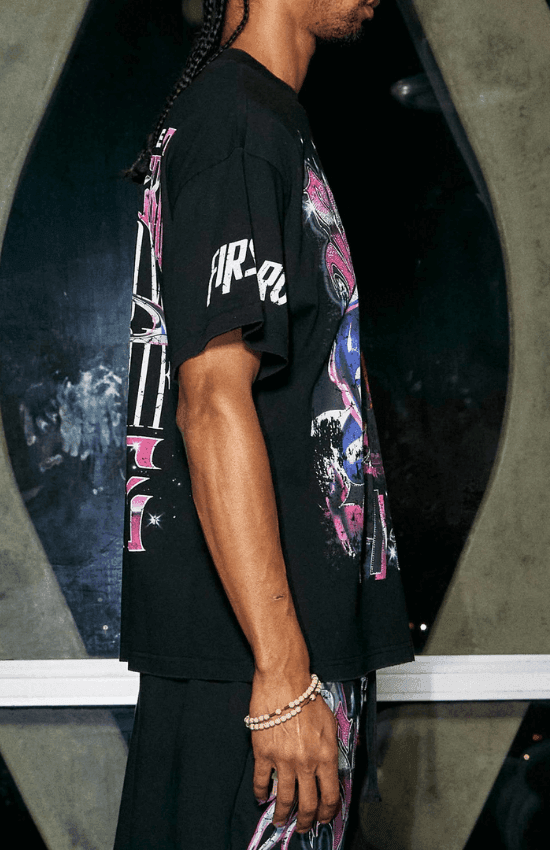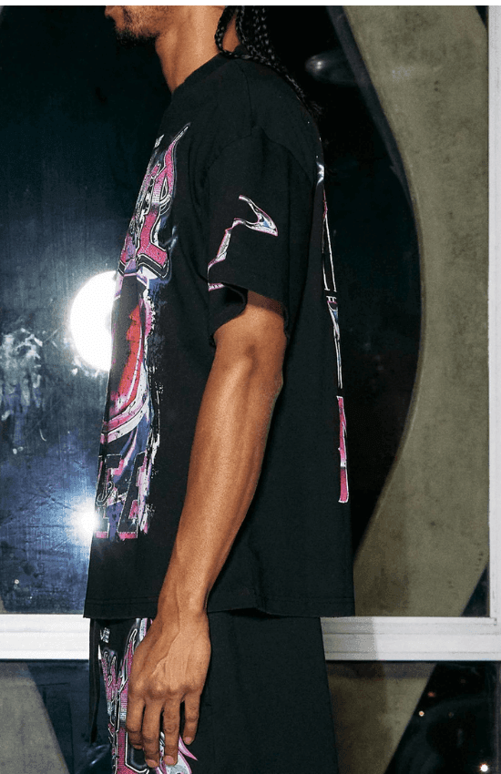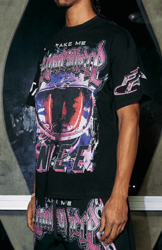 Jean Premium Graphic Print First Row Tee With rhinestone details