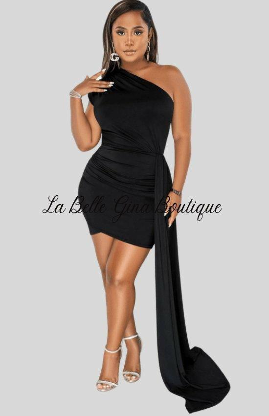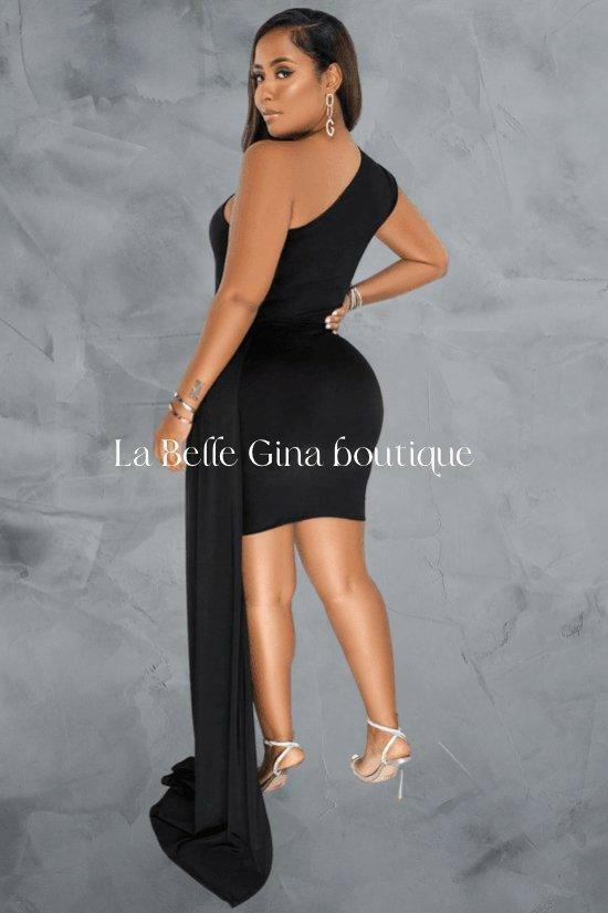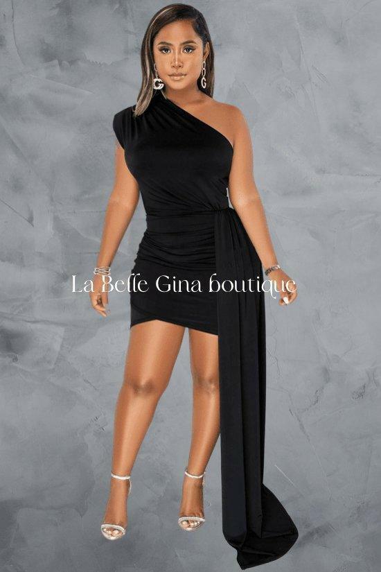 https://www.labelleginaboutique.com/collections/shop-al-womens-fashionElegant One Shoulder Black Skirt Dress