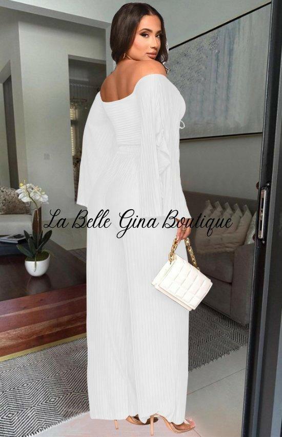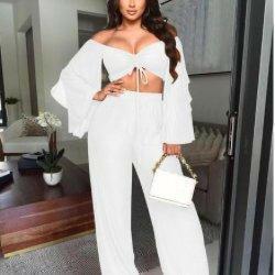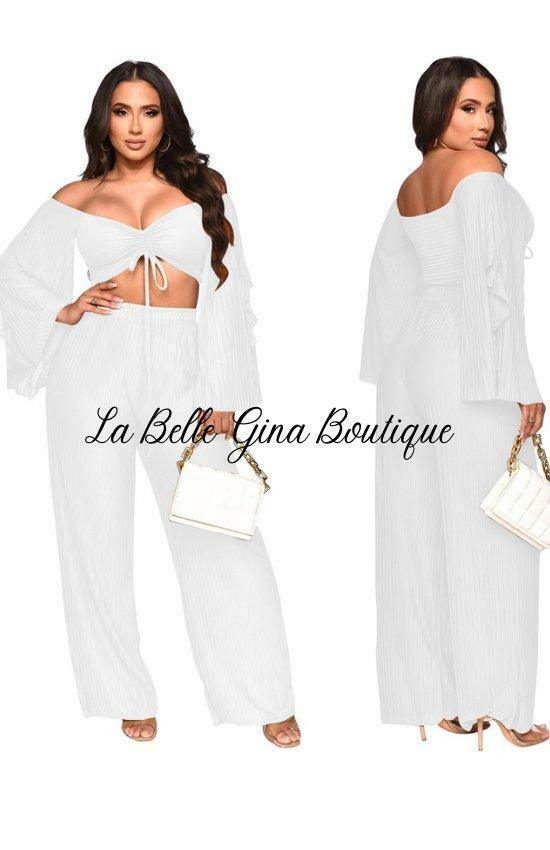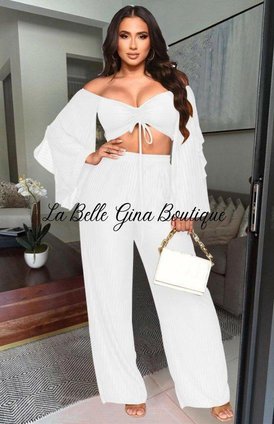 Juliette Long Sleeve Crop Top And Pants Set- white - La Belle Gina Boutique