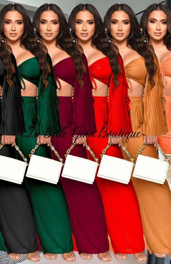 Juliette Long Sleeve Crop Top And Pants Set-FINAL SALE