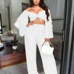 This Women Solid Crinkled Long Sleeve Crop Top and Pants Two-Piece Set Design Made of High-Quality Polyester and Spandex Material. It Is Stretchy, Durable and Comfortable. It Is a Must-Have Outfit for All Seasons. Two Piece Pant Sets Can Solve Your Collocation Troubles.