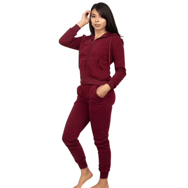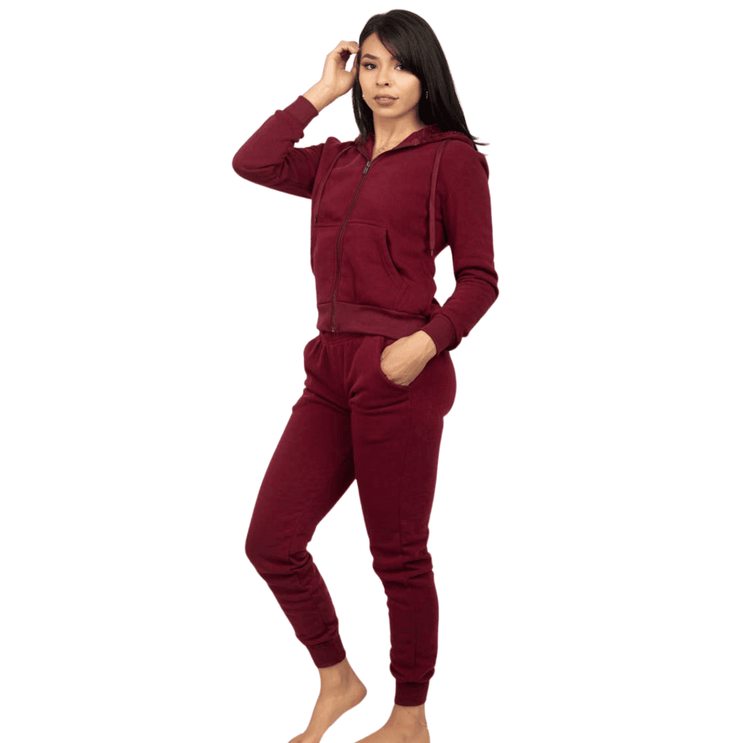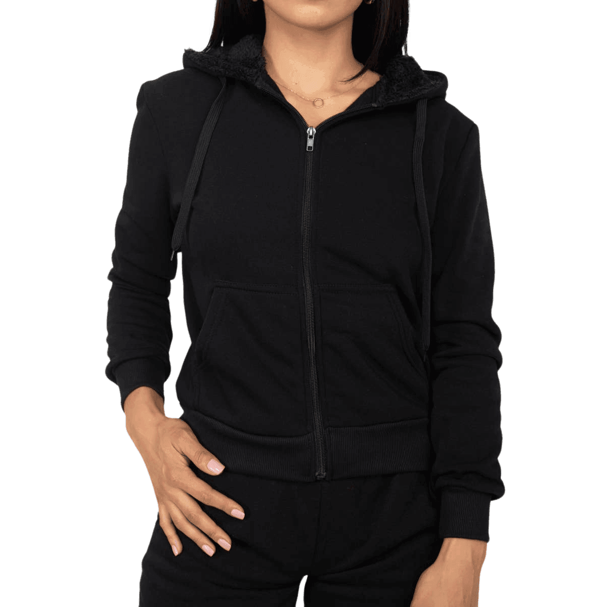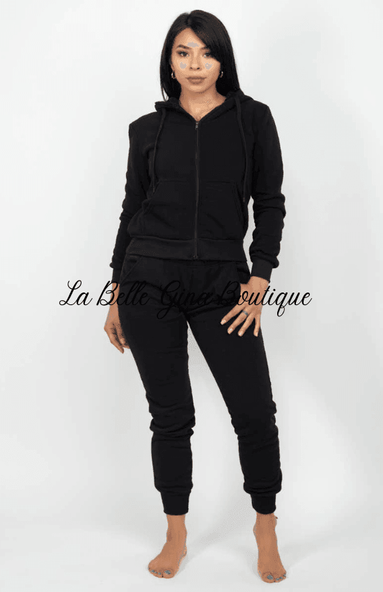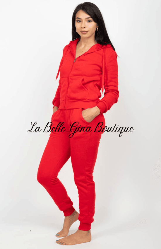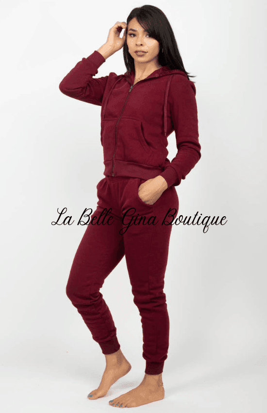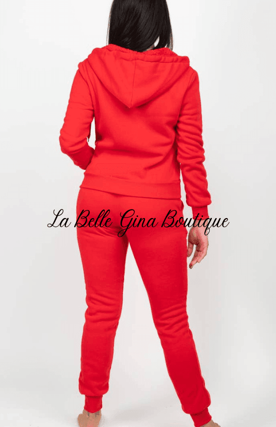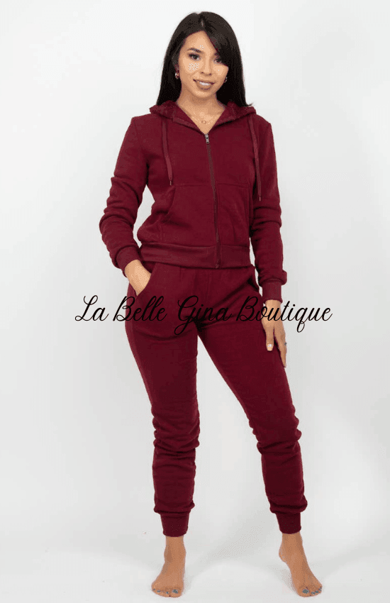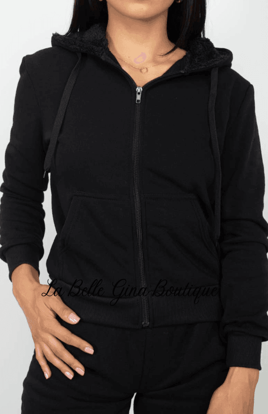June Fleece zip Up Fur Trim Hood Sweatsuit - La Belle Gina Boutique