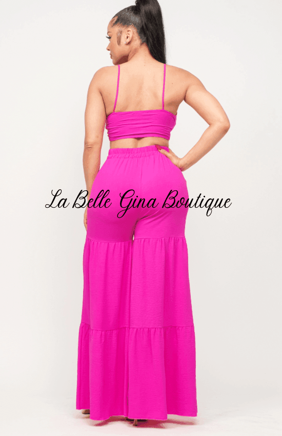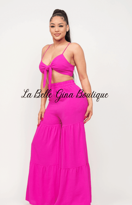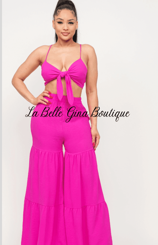 June Open Front Tie Top and Wide Flare Pants Set-Fuchsia - La Belle Gina Boutique