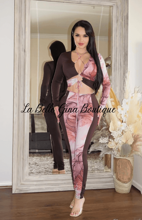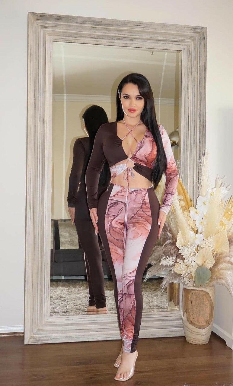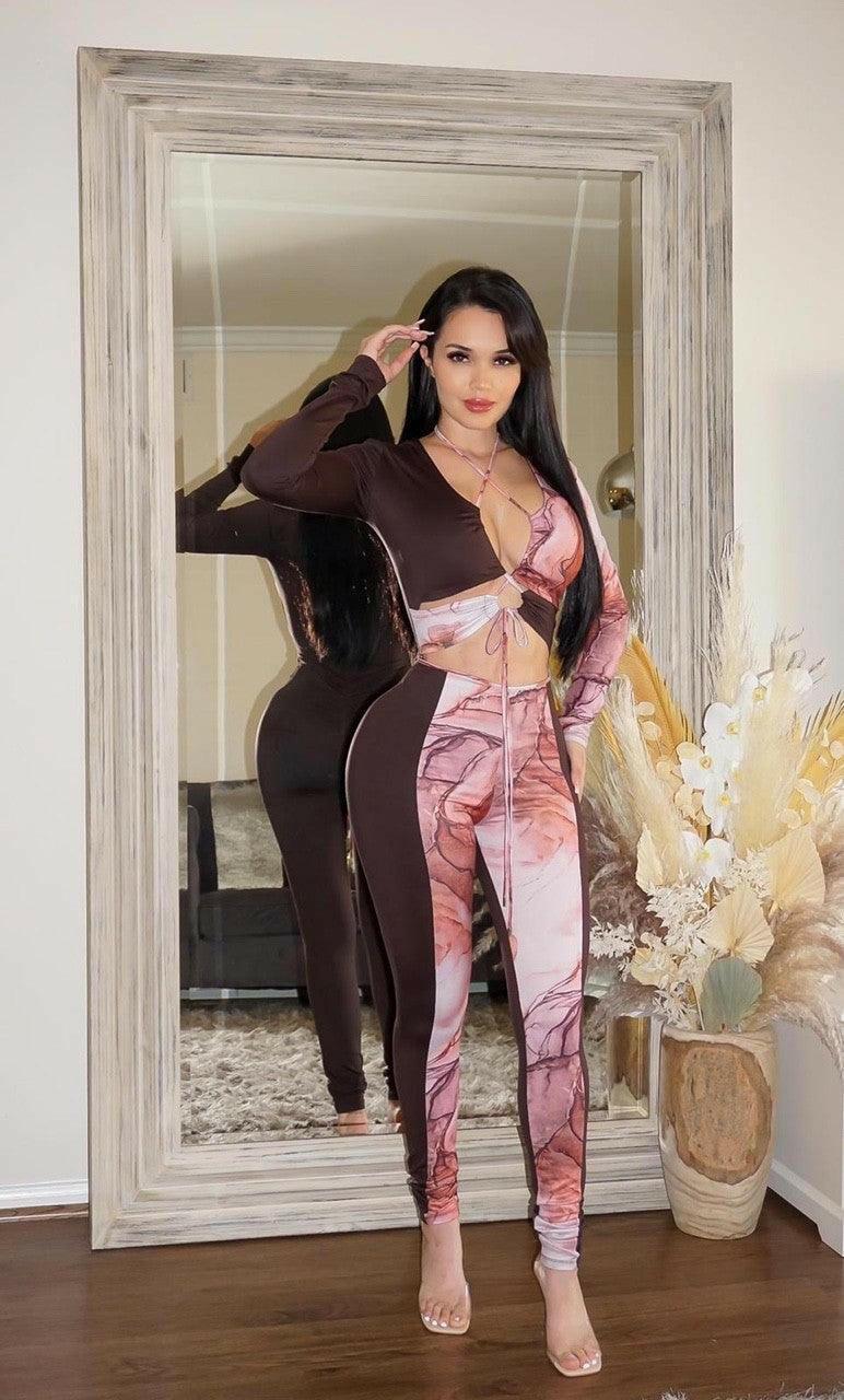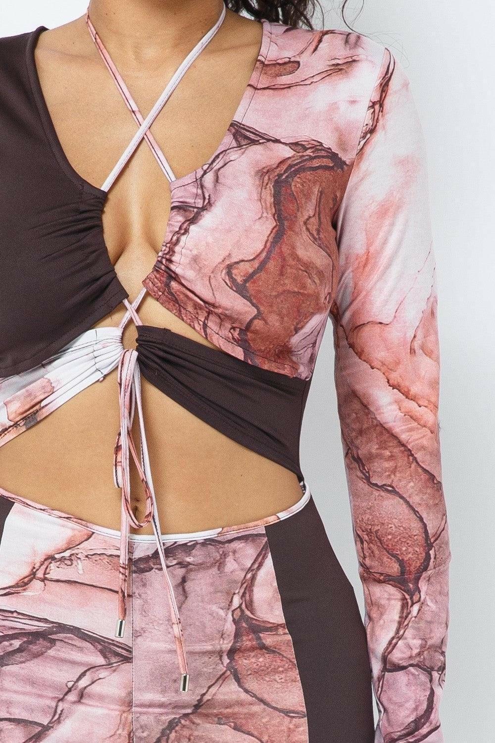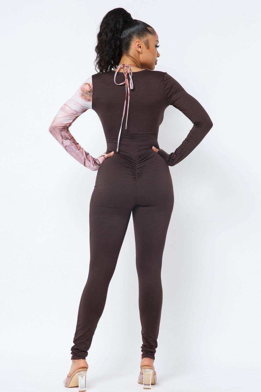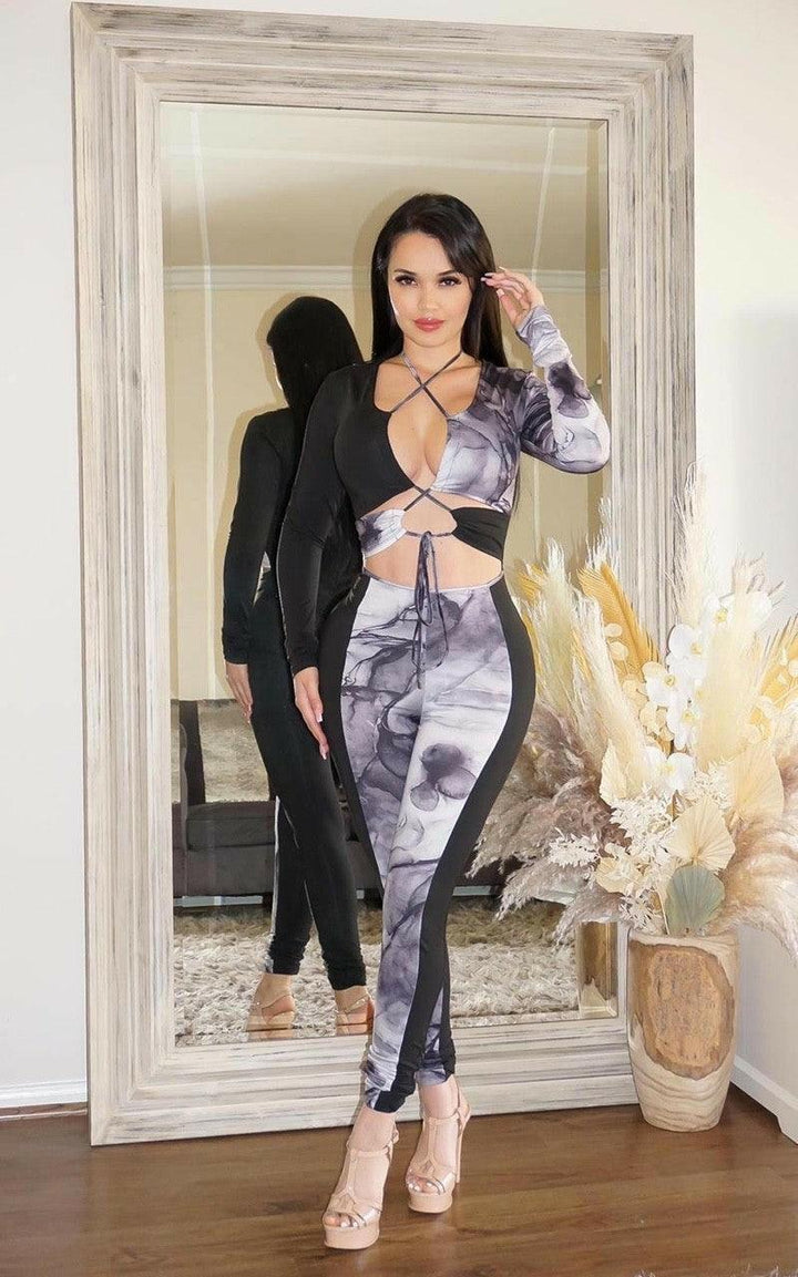 JUNE long sleeves with marble print jumpsuit-FINAL SALE