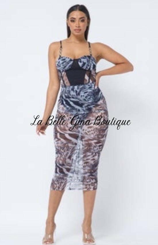 JUNE spaghetti strap mesh see through dress - La Belle Gina Boutique