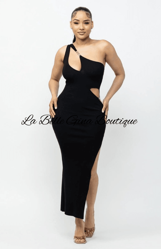 The Lucie Semi-Stretch One Shoulder Maxi Dress is a stunning piece that effortlessly combines elegance and allure. This dress is perfect for those special occasions.