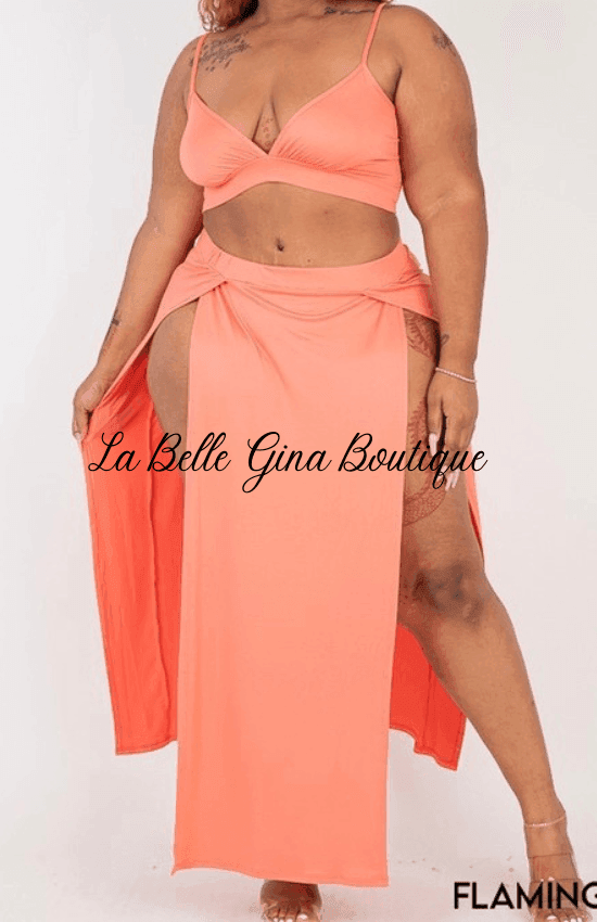 Kayla bra top and side slit skirt. Soft and light weight set.