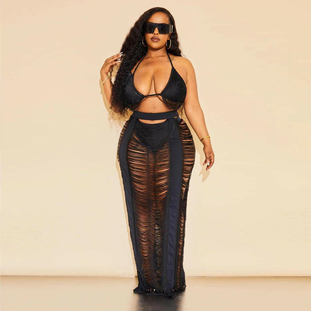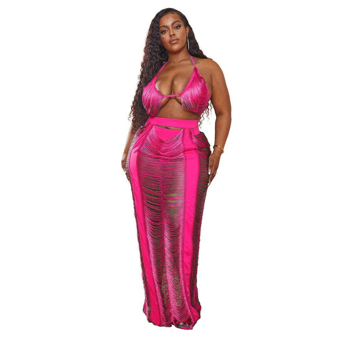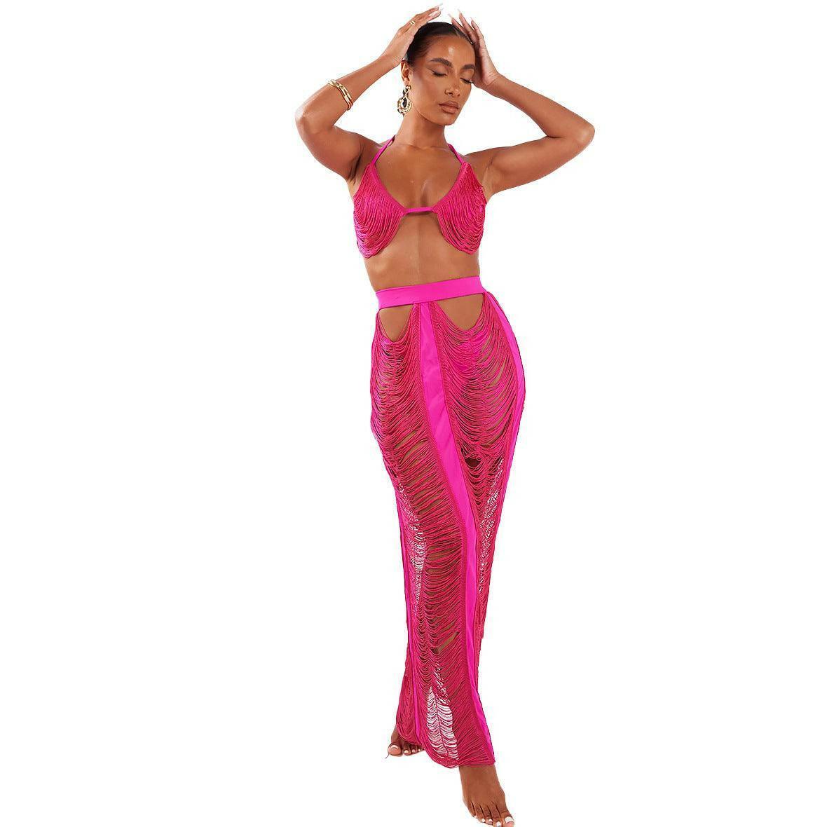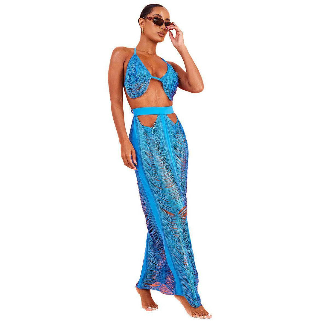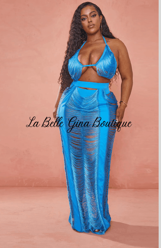 LABADEE Cutout fringe beachwear Two-piece set-Blue - La Belle Gina Boutique