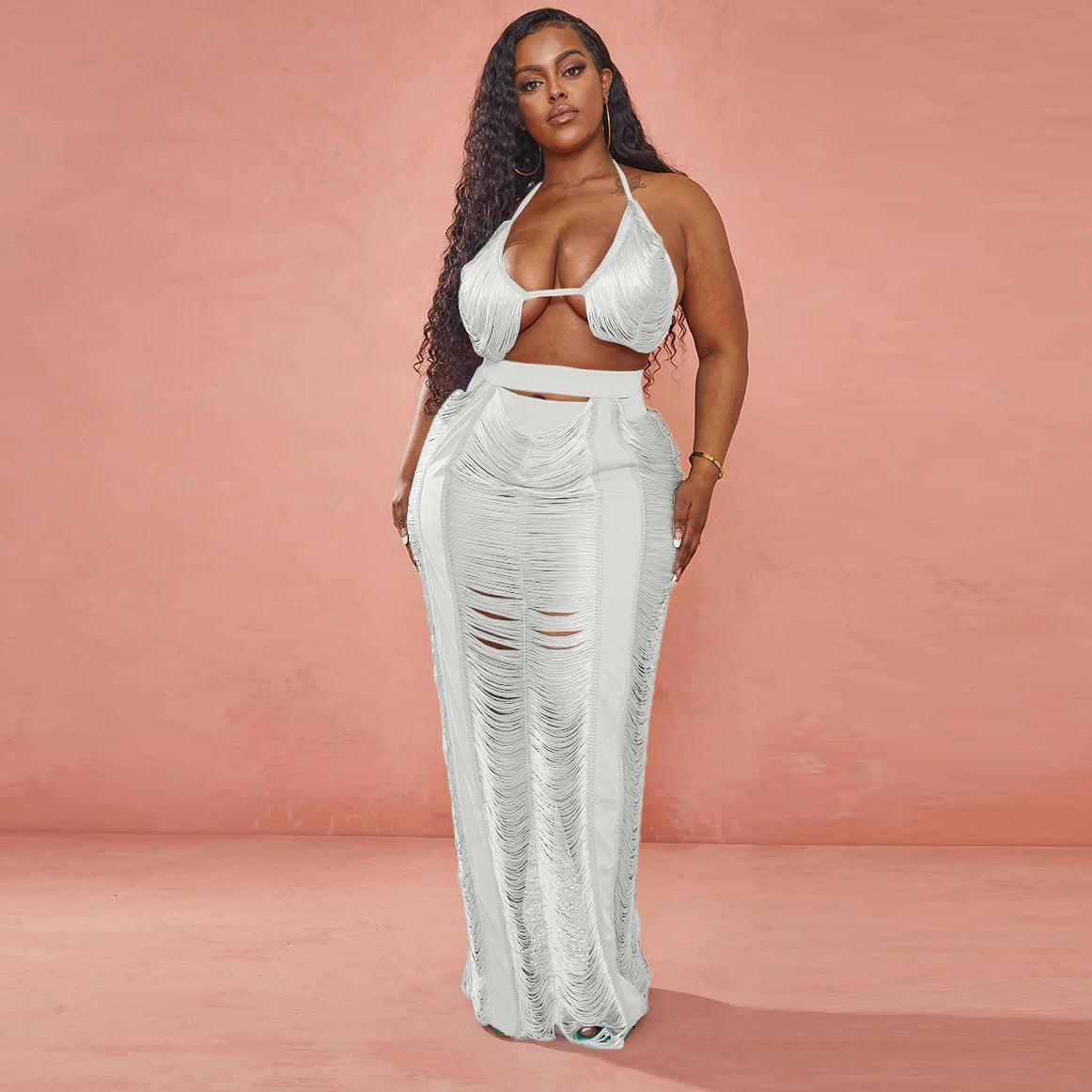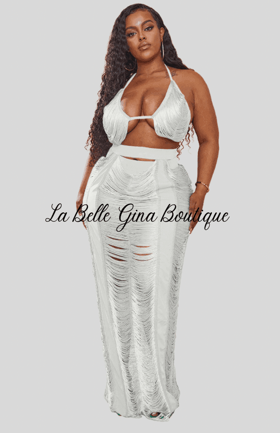 LABADEE Cutout fringe Beachwear Two-piece set-White - La Belle Gina Boutique