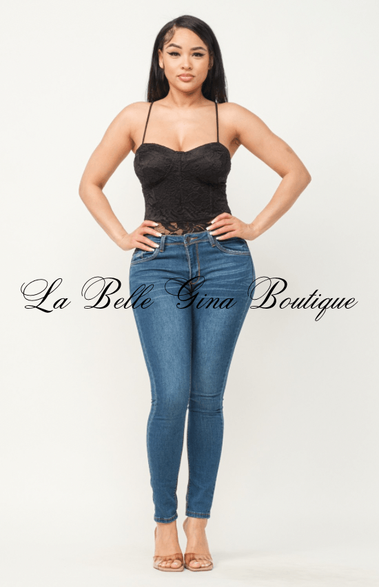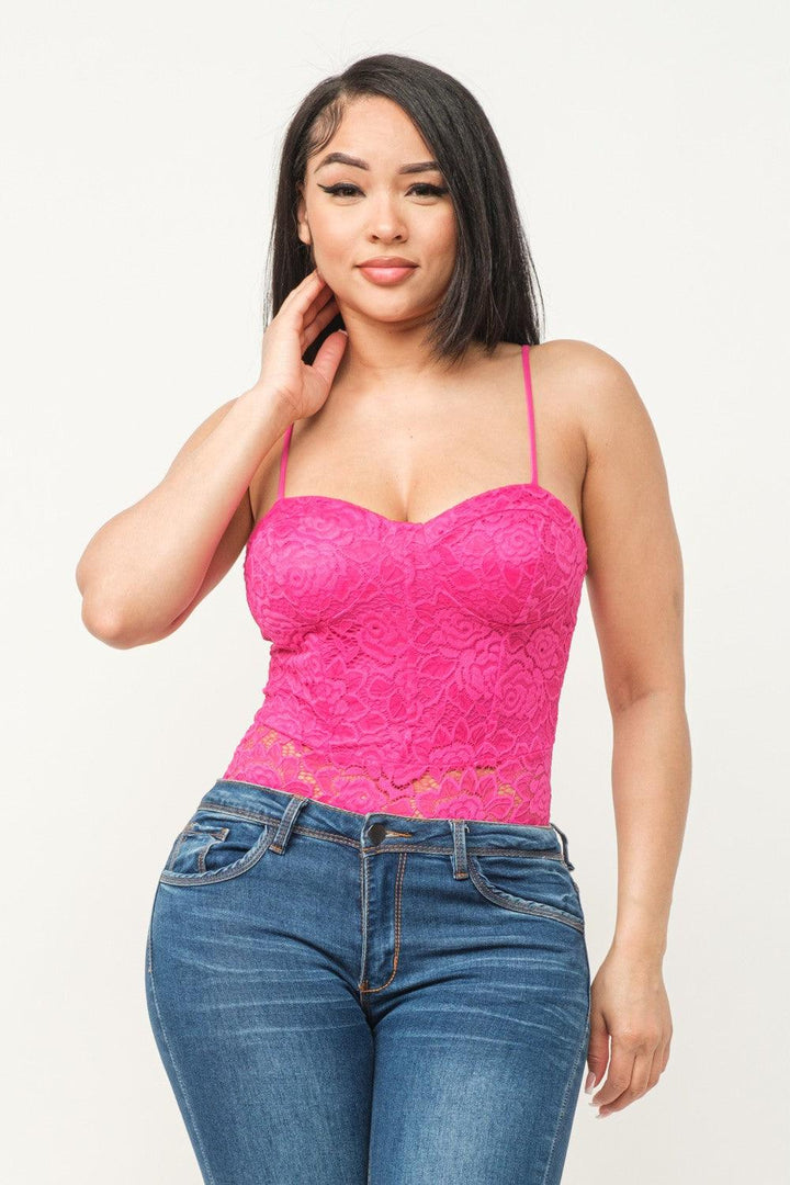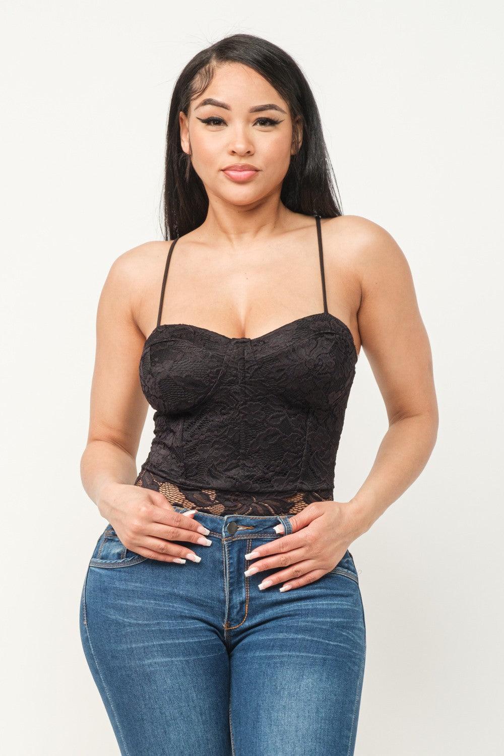 Lace Corset Bodysuit – Adjustable Spaghetti Strap Lace Bodysuit in 4 Colors