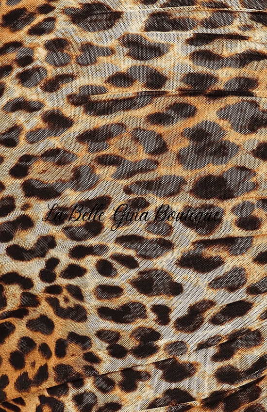 Lala Leopard Printed Sleeveless All-Over Rushed Semi Sheer Maxi dress High Slit One side
