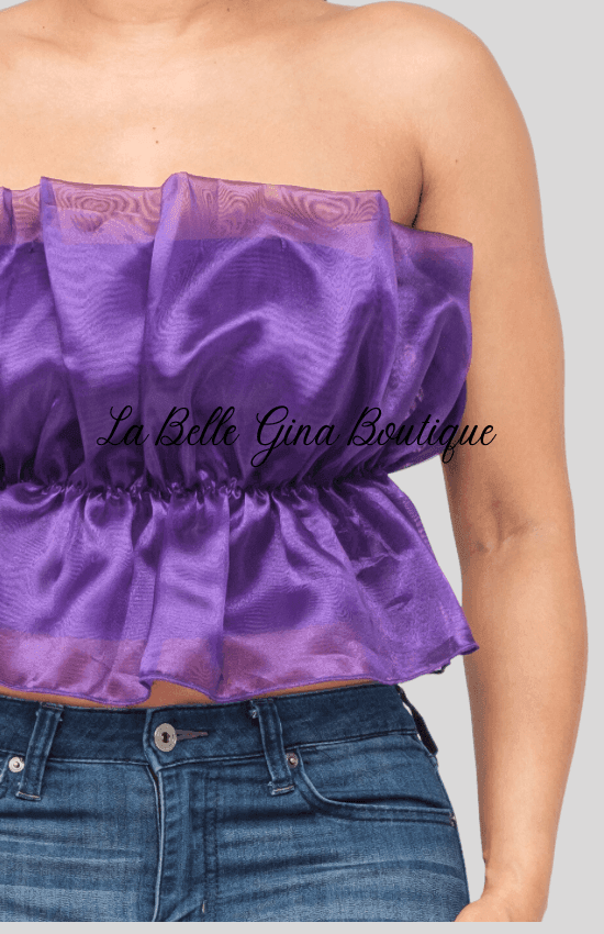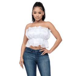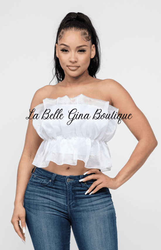 Lala Linning Elastic Shirring Tulle Tube Top-White - La Belle Gina Boutique