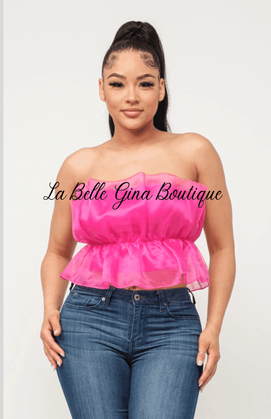 Introducing the Lala Linning Elastic Shirring Tulle Tube Top in a vibrant Fuchsia hue. This stunning tank top is the epitome of chic and feminine style. Crafted with meticulous attention to detail, this tube top features an elastic shirring design that effortlessly hugs your curves, creating a flattering and comfortable fit. The tulle fabric adds a touch of elegance and sophistication, making it perfect for both casual and dressy occasions. Whether you're heading out for a night on the town or simply want to elevate your everyday style, this tube top is a versatile wardrobe staple. Pair it with your favorite jeans for a trendy and effortless look, or dress it up with a skirt and heels for a glamorous ensemble. Designed with the modern fashionista in mind, this wrap top exudes confidence and individuality. Its vibrant Fuchsia color is sure to turn heads and make a statement wherever you go. Upgrade your wardrobe with the Lala Linning Elastic Shirring Tulle Tube Top and experience the perfect blend of style, comfort, and versatility. Don't miss out on this must-have piece that will effortlessly elevate your fashion game.