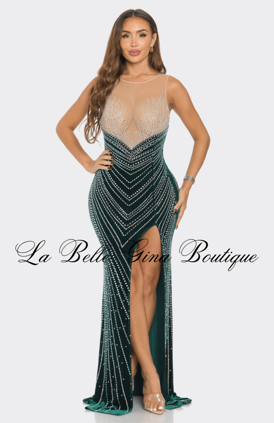 Lala Rhinestone Velvet Contrast Maxi Dress