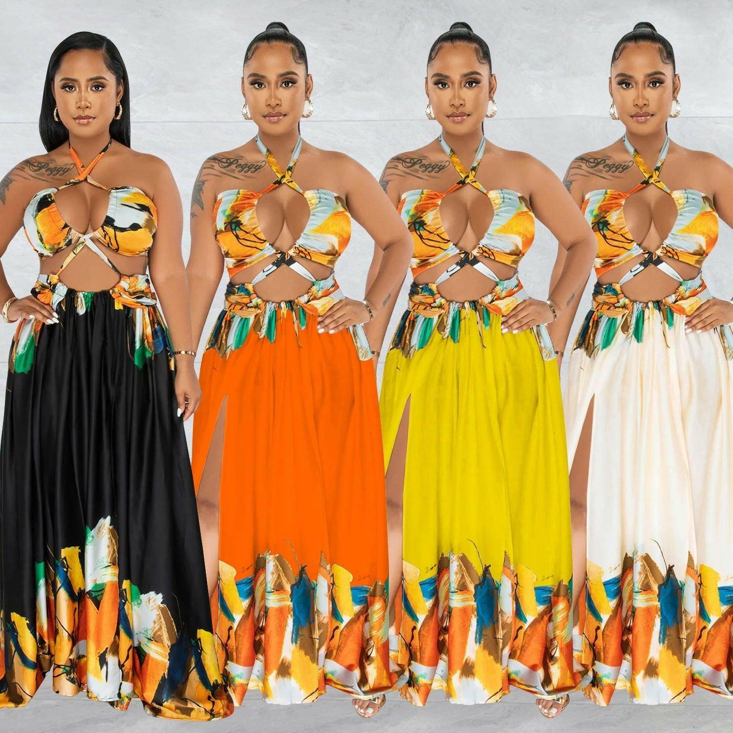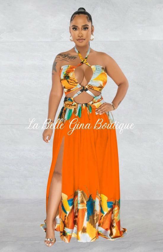 Lara Lace-up Sleeveless Breast Wrap Maxi Dress-Orange - La Belle Gina Boutique