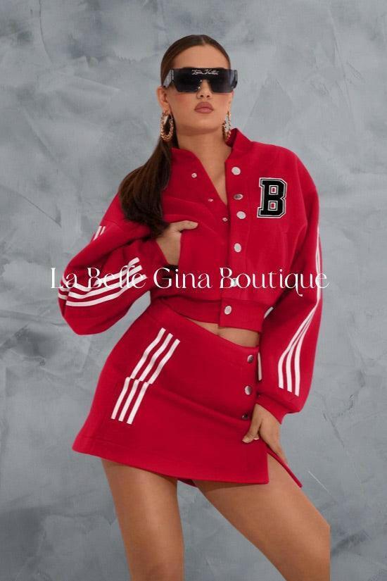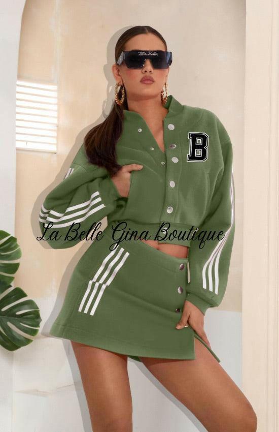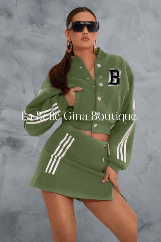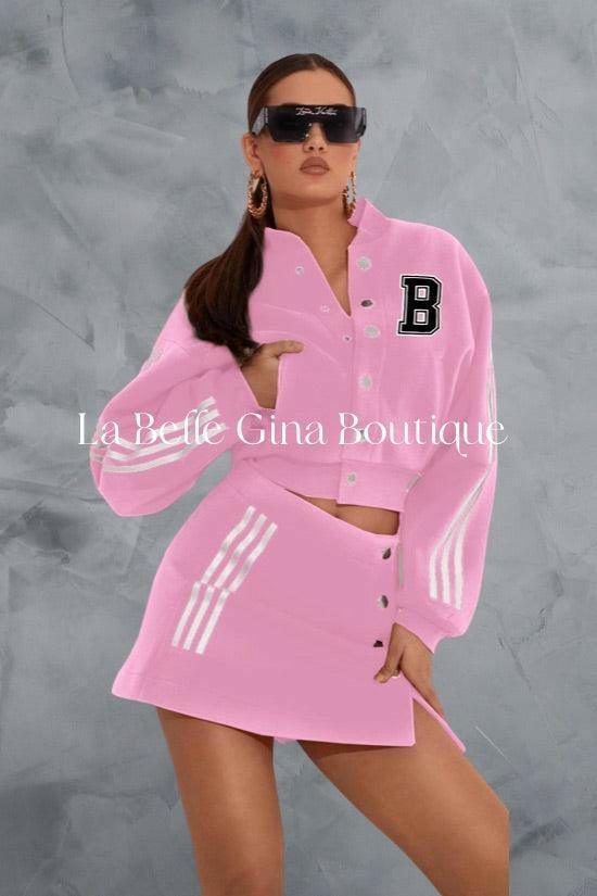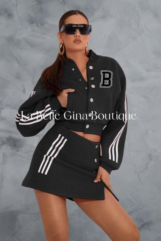 Laura baseball jacket letter B printed sports skirt set - La Belle Gina Boutique