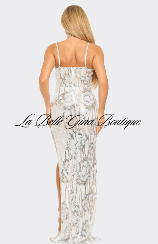 Elevate your wardrobe with the Laura Sequin Sleeveless V-Neck White Maxi Dress. Designed for women who want to shine at every event, this dazzling dress will become your go-to for glamorous nights. The striking sequins catch the light brilliantly from every angle, ensuring you can command attention wherever you go. From formal evenings to lively parties, you deserve a special piece that radiates sophistication and bold energy. Step into luxury and confidence with each wear.