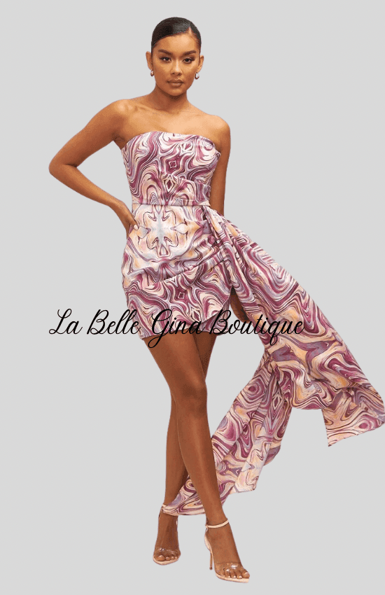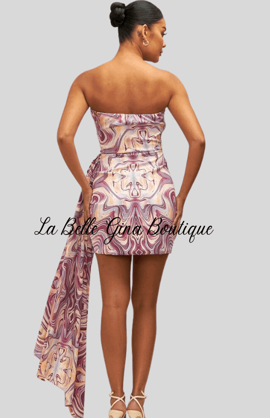 Lena Drape Bustier Dress-Purple Multi - La Belle Gina Boutique