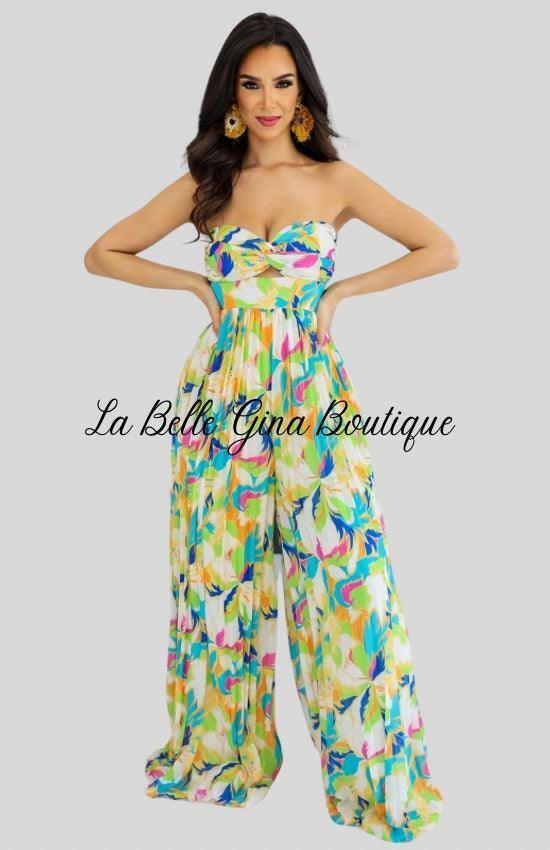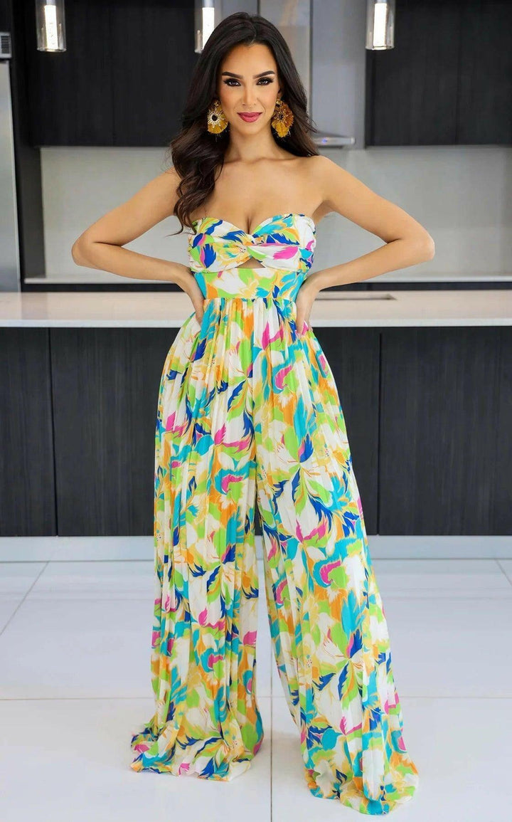 Léna Off Shoulder Print Pleated Jumpsuit - La Belle Gina Boutique