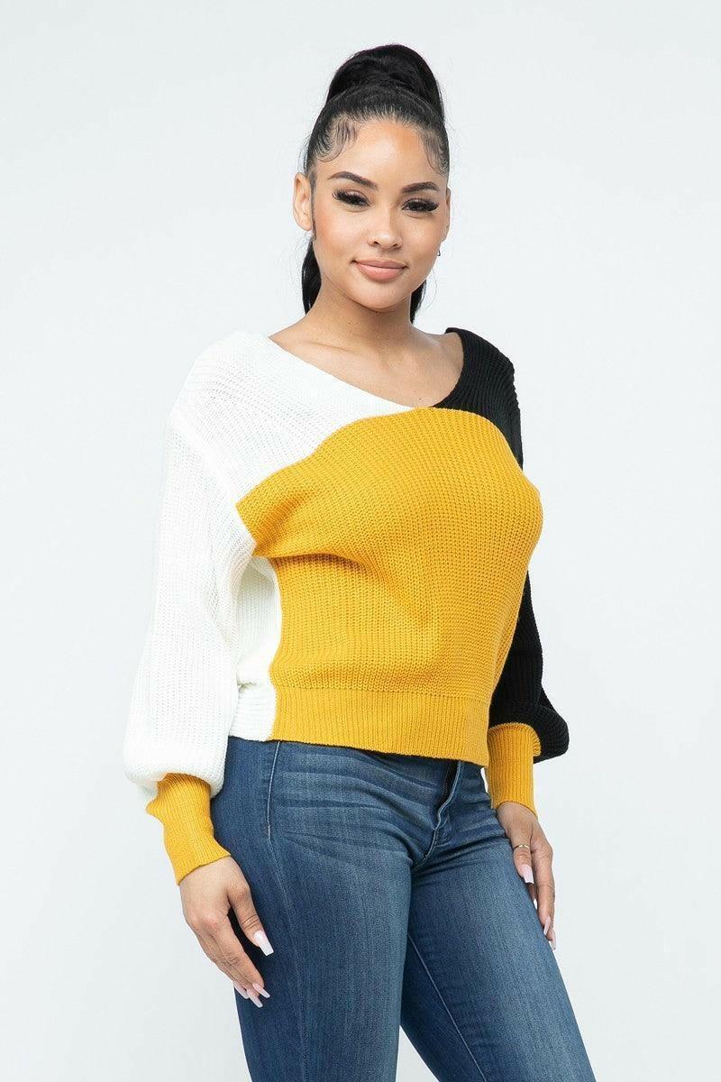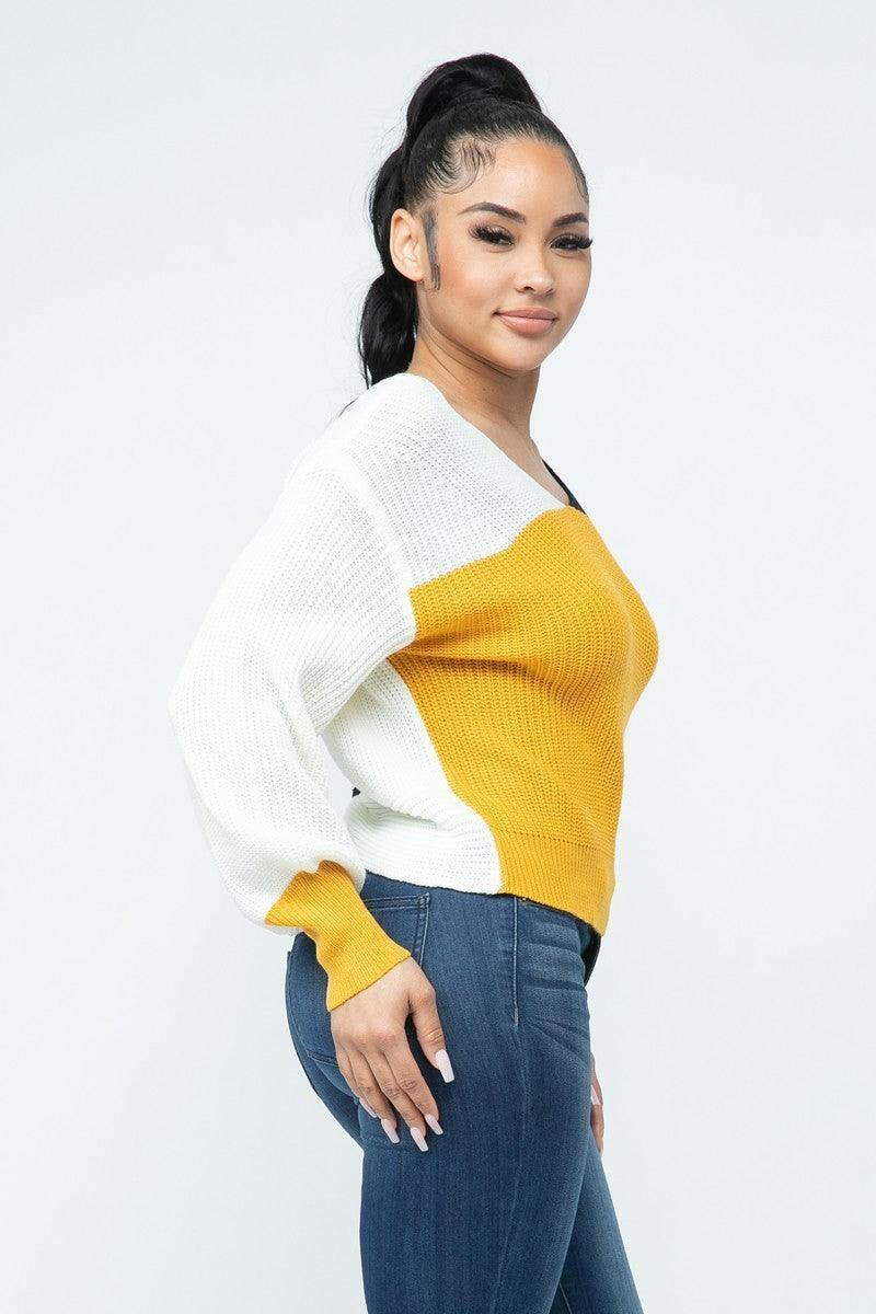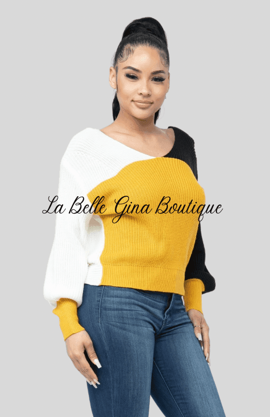 Introducing our Color Block Twisted Open Back Cozy Sweater, the perfect blend of comfort and style.https://www.labelleginaboutique.com/collections/plus-size-glam-chic-fashion-curve-collection-for-confident-women-la-belle-gina-boutiqueĀ