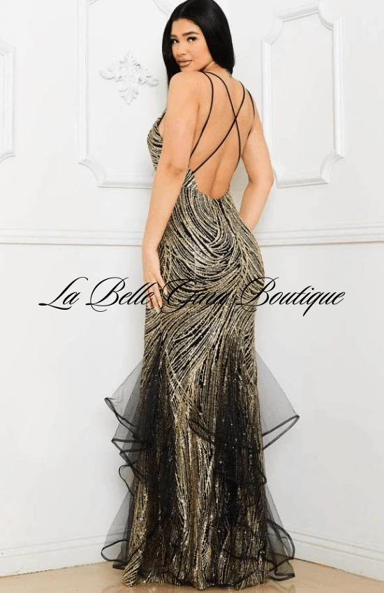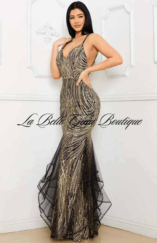 Lidia Glued Glitter Swirl Sleeveless Maxi Dress-Gold