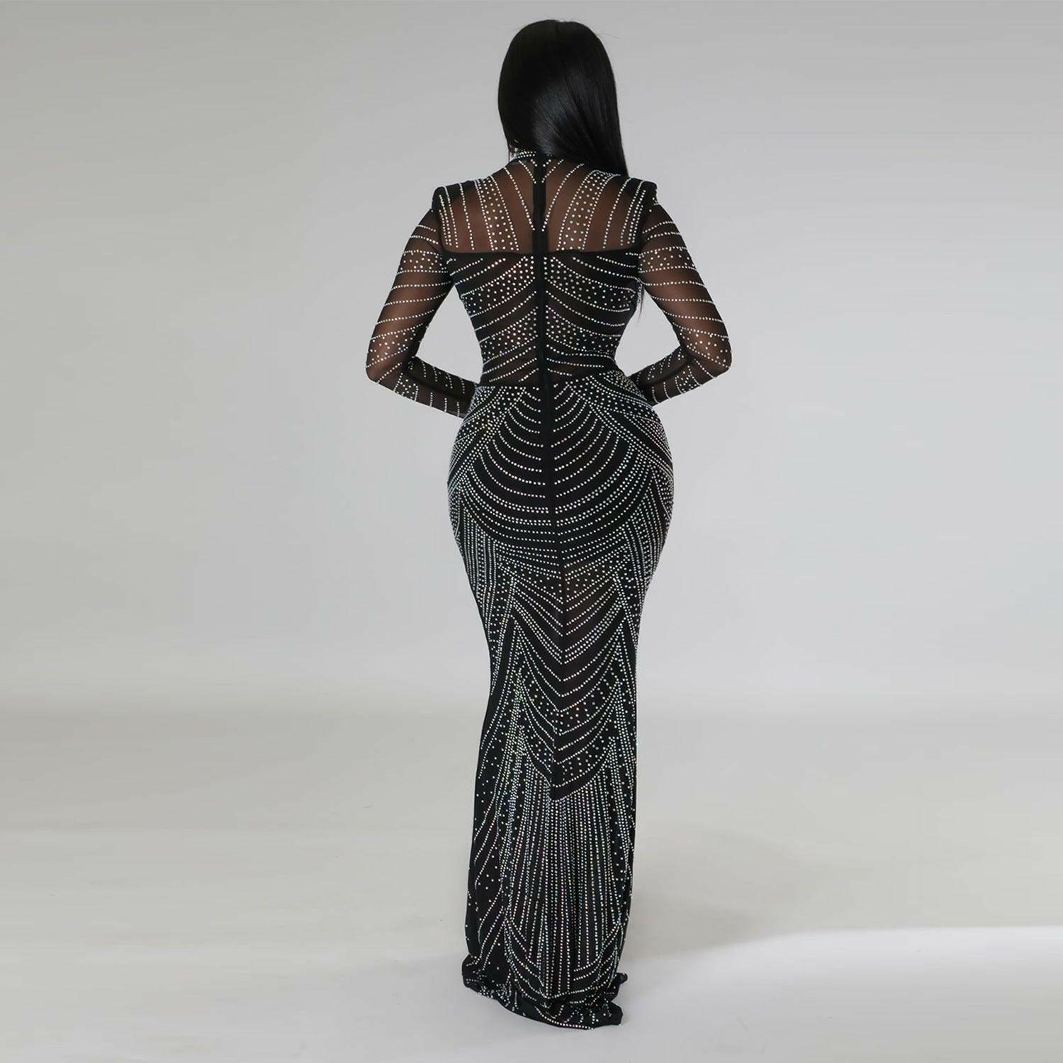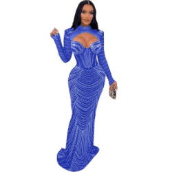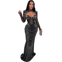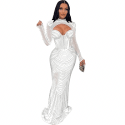 Step into the spotlight with this women’s see-through cutout long sleeves maxi dress, expertly crafted for glamorous occasions. Designed to turn heads, this dress features sparkling details that are perfect for evening parties, weddings, or special events. The modern silhouette and elegant fabric make it an essential addition to your formal wardrobe. Whether you are attending a high-profile party or an intimate gathering, the sequin maxi dress will ensure your presence is memorable and striking.