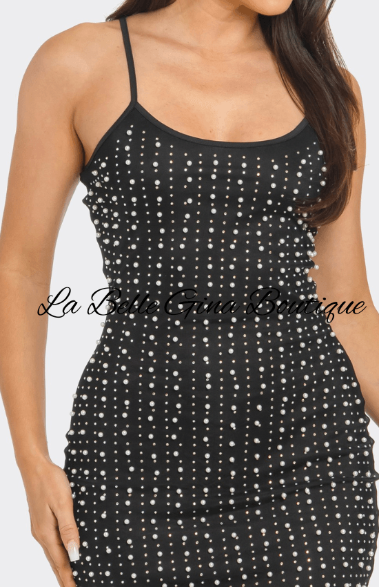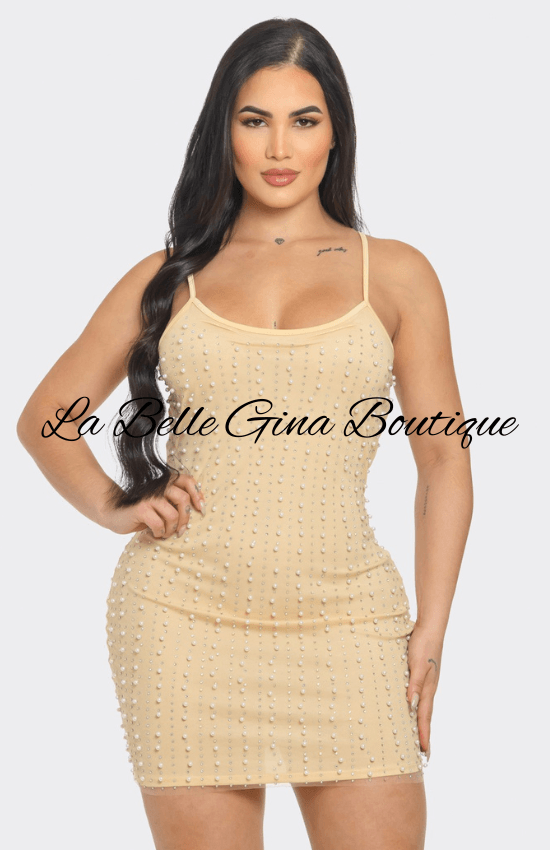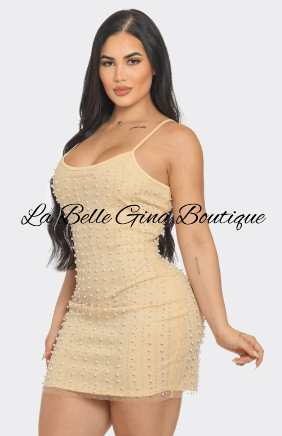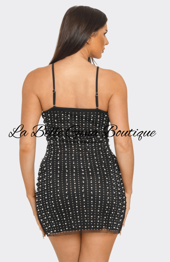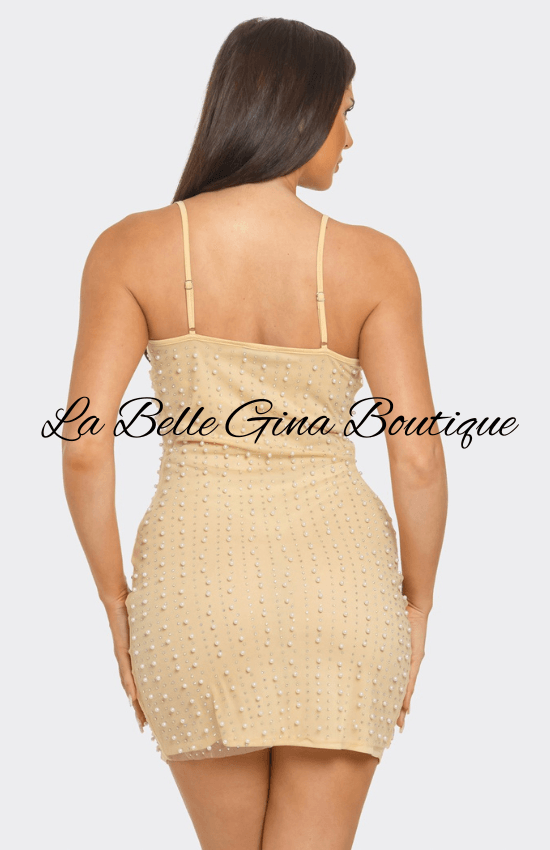 Lina Mesh Inside Linning Pearl Beaded Rhinestone Mini Dress