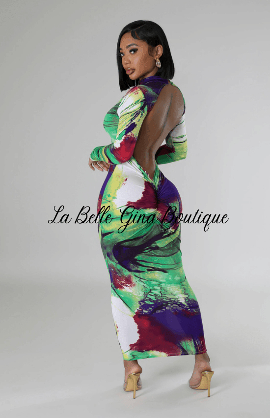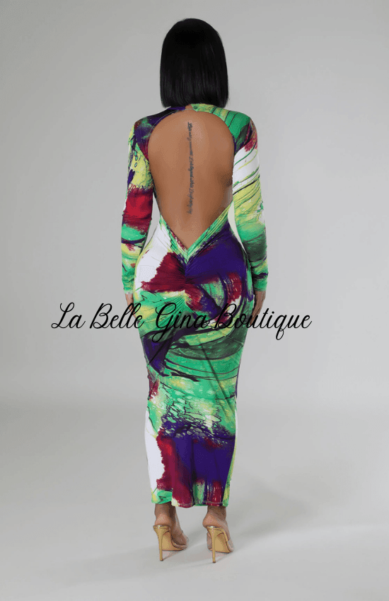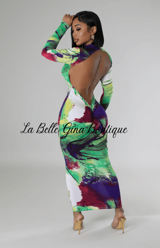 Lisa Mock Neck Long Sleeves Open Back Stretch Special Occasion Summer Date Event Party Long Dress