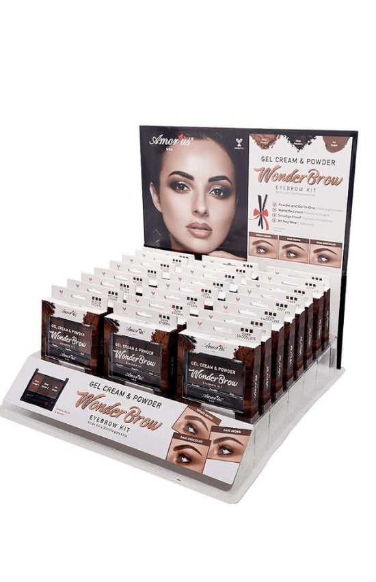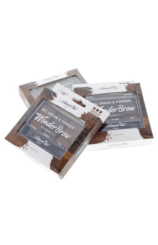 Lisa Wonder Brow Eyebrow Kit. A gel cream and powder eyebrow kit that helps create clean and define brows. Features 2 brow powders and 1 matching brow gel shade. Mini brow brush and spoolie included. Water resistant formula, smudge proof, all day wear. Assorted in 3 color palettes: Medium Brown, Dark Brown, and Dark Chocolate.