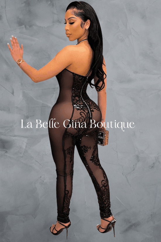 NELLIE sequins see through sleeveless jumpsuit - La Belle Gina Boutique