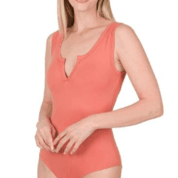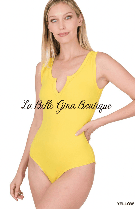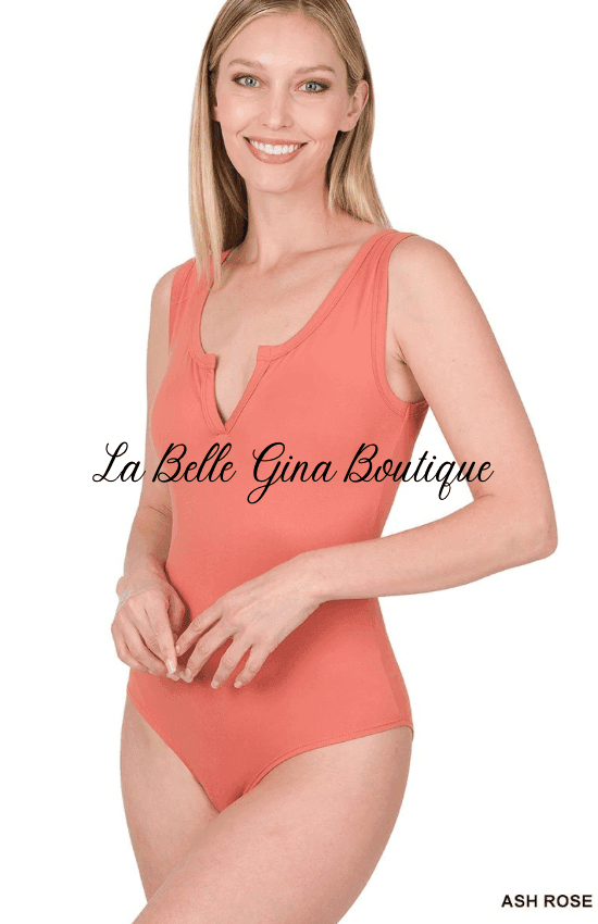 Lora Brushed Microfiber Split Neck Bodysuit - La Belle Gina Boutique